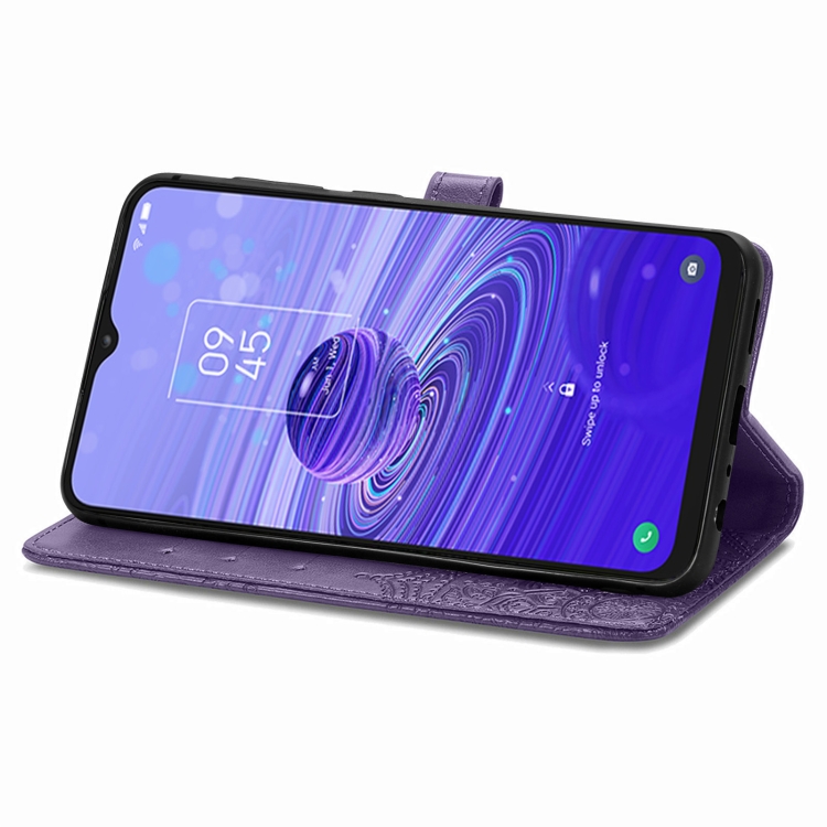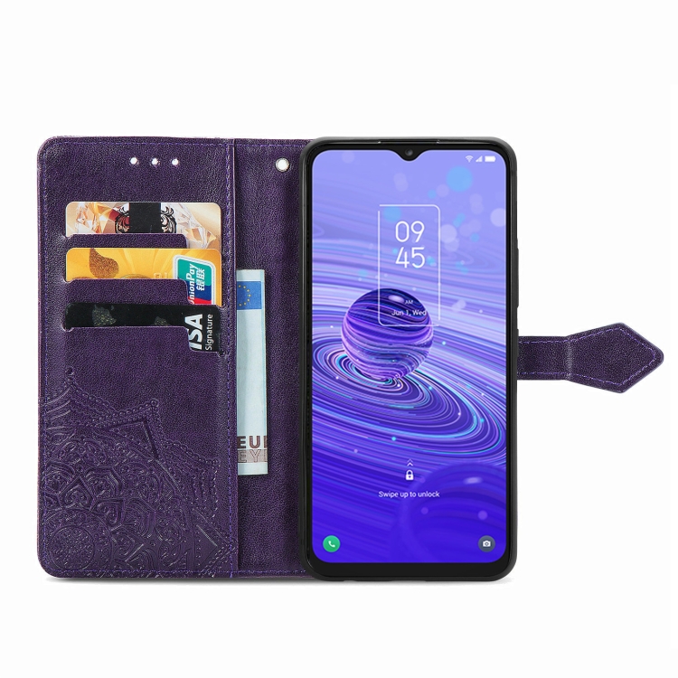 Funda de Cuero para TCL 40R Mandala Flower en Relieve (Púrpura)