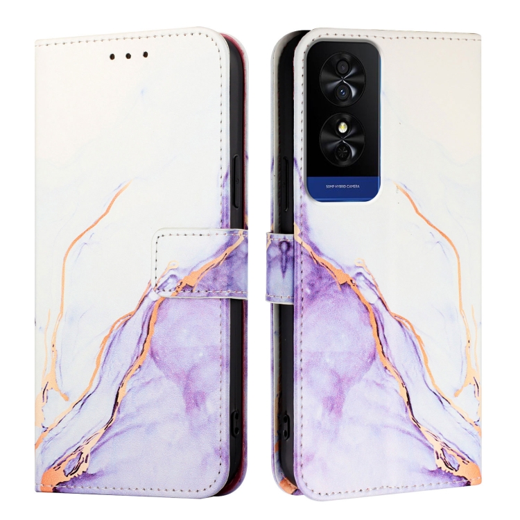 Funda de Cuero con Tapa para TCL 50 5G Pt003 con Patrón Mármol (Blanco y Morado)