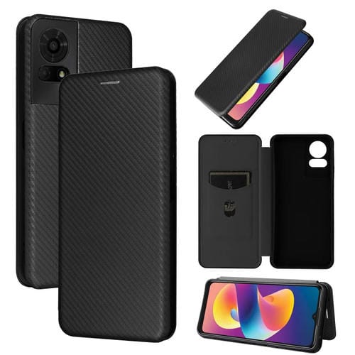 Funda de Cuero para TCL 50 Le 5G con Tapa y Textura de Fibra de Carbono (Negro)