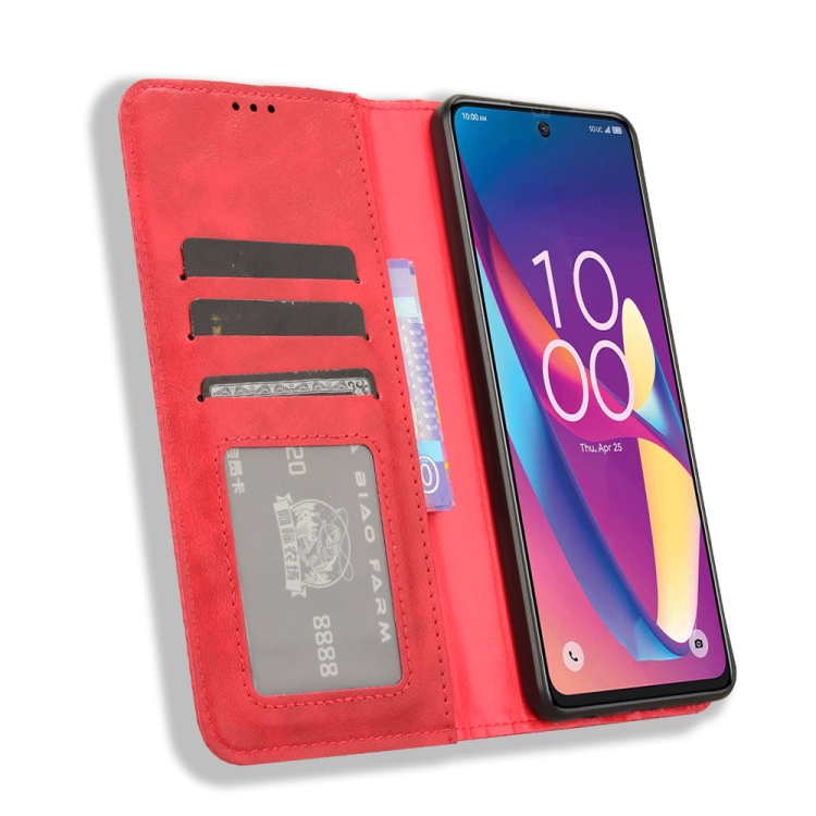 Funda para TCL 50 XL 5G de Cuero con Textura Retro y Hebilla Magnética (Rojo)