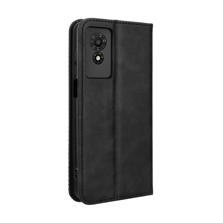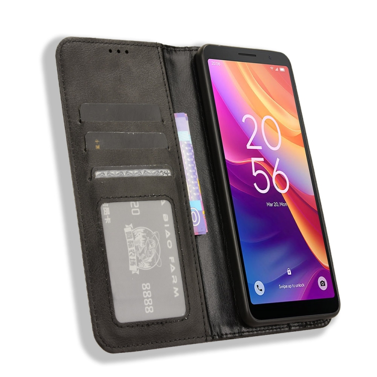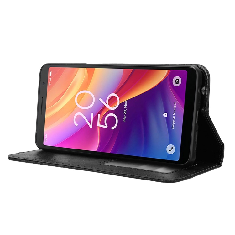 Funda para TCL 501 4G Cuero Textura Retro con Hebilla Magnética (Negro)