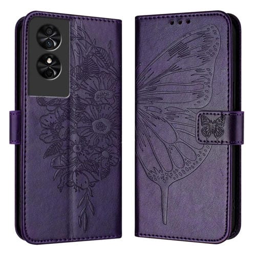 Funda de Cuero para TCL 505 Se con Mariposa en Relieve (Púrpura Oscuro)