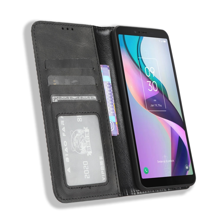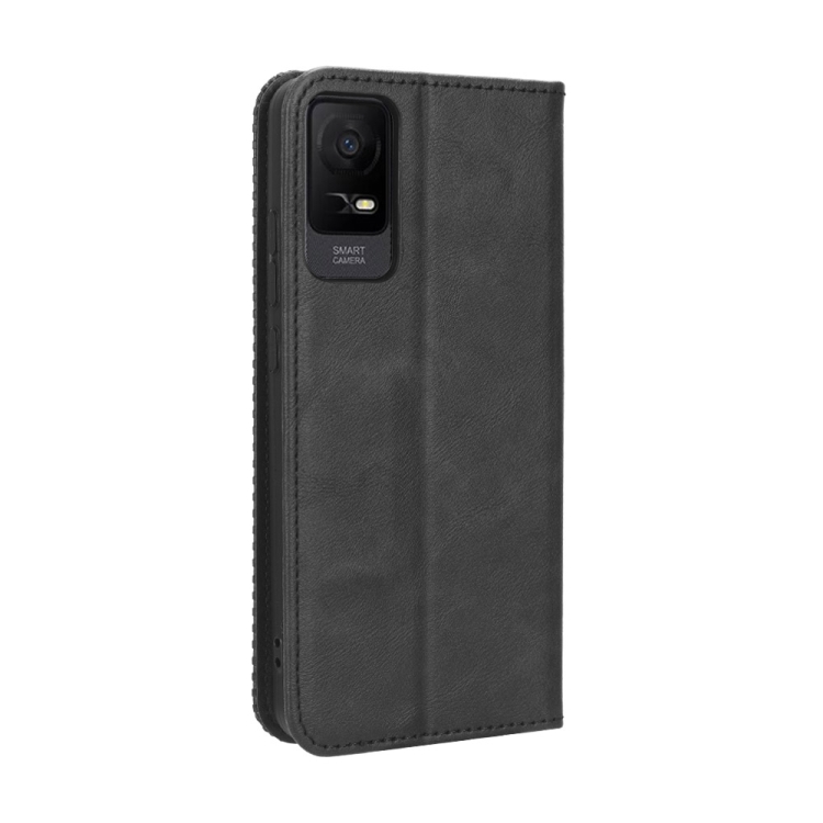 Funda de Cuero para TCL Ion X con Hebilla Magnética y Textura Retro (Negro)