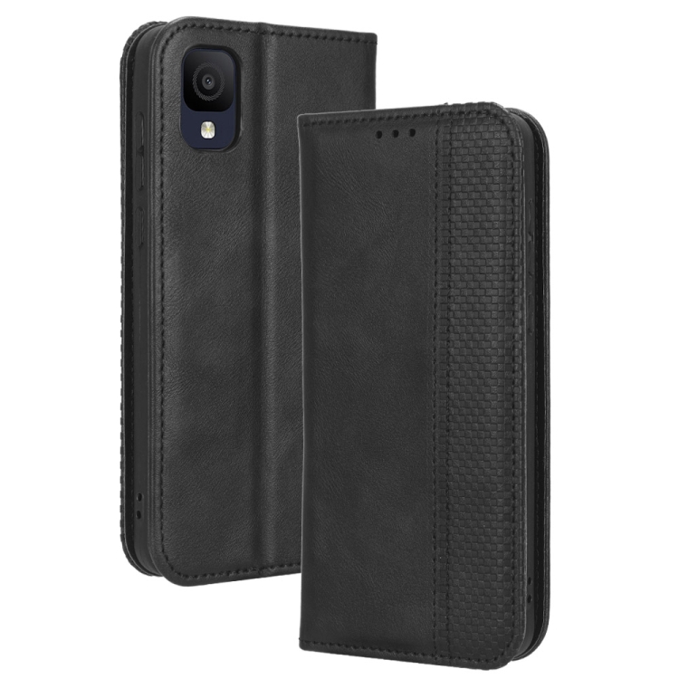 Funda de Cuero para TCL Ion Z con Hebilla Magnética y Textura Retro (Negro)