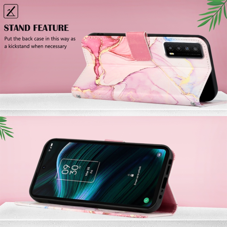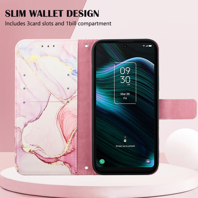 Funda para TCL Stylus 5G Pt003 con Tapa de Cuero y Patrón Mármol (Oro Rosa)