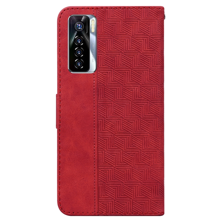 Estuche de Cuero para Tecno Camon 17 Pro Geométrico en Relieve (Rojo)