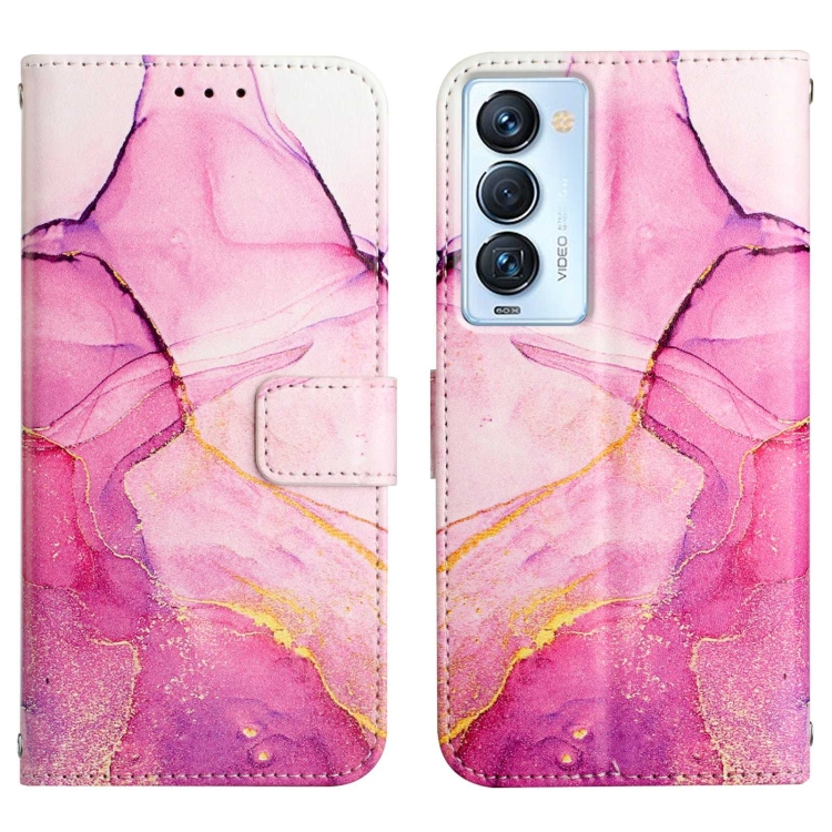 Funda de Cuero Pliegue para Tecno Camon 18 Pt003 con Patrón Mármol (Rosa Purple Gold)