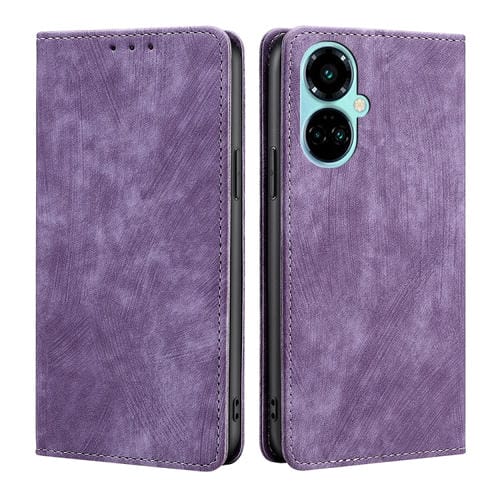 Funda de Cuero Magnética para Tecno Camon 19 / 19 Pro con RFID y Cepillo Antirrobo (Púrpura)