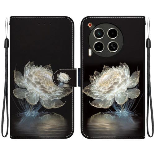 Funda de Cuero para Tecno Camon 30 4G / 30 5G Cl6 Cl7 con Dibujo Coloreado y Textura de Cristal (Peonía de Cristal)