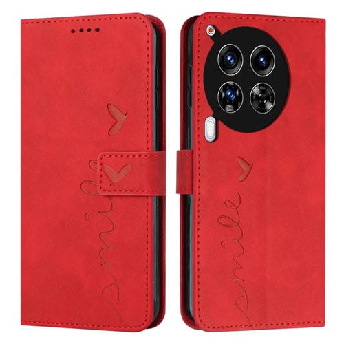 Funda para Tecno Camon 30 4G y 5G Skin Feel Heart de Cuero en Relieve con Cordón Largo (Rojo)
