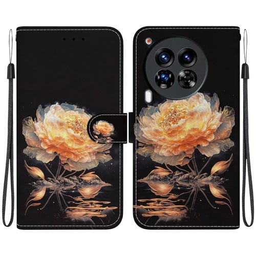 Funda de Cuero para Tecno Camon 30 Premier 5G con Dibujo y Textura de Cristal (Peonía Dorada)