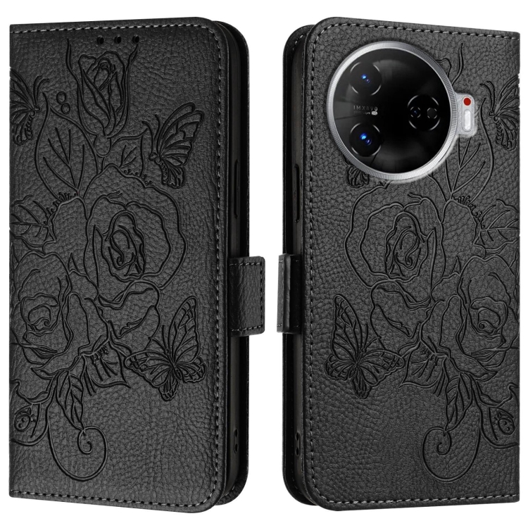 Estuche de Cuero Antirrobo RFID para Tecno Camon 30 Pro 5G con Relieve (Negro)