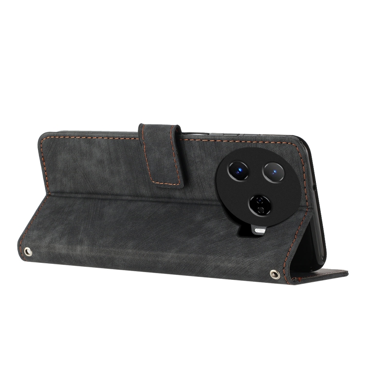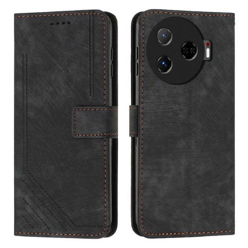 Funda de Cuero para Tecno Camon 30 Pro 5G Skin Feel con Patrón de Rayas y Cordón Largo (Negro)