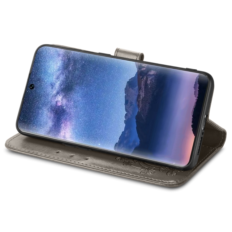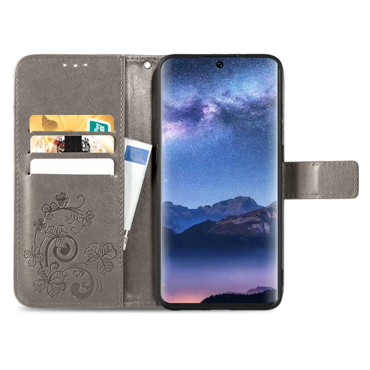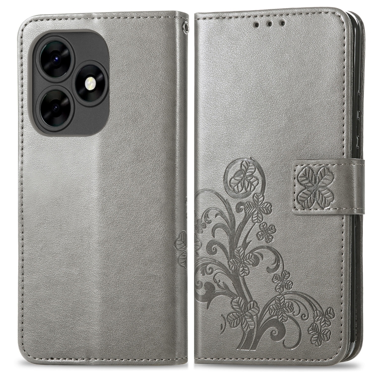 Funda para Teléfono Tecno Itel S23 de Cuero con Hebilla en Relieve y Cierre de Cuatro Hojas (Gris)