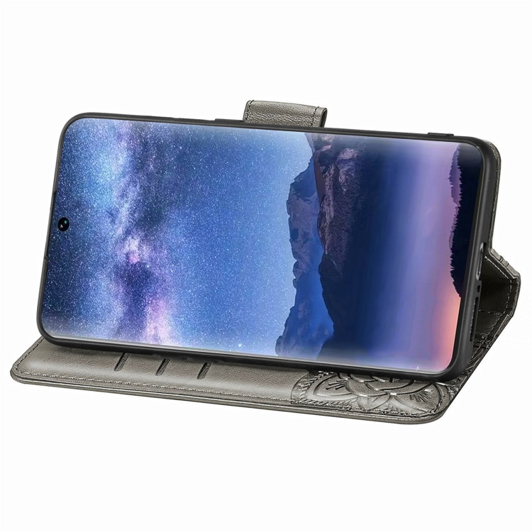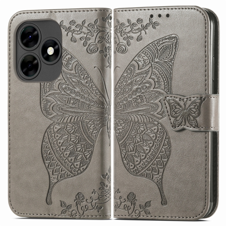 Funda para Tecno Itel S23 de Cuero con Relieve Flor y Mariposa (Gris)