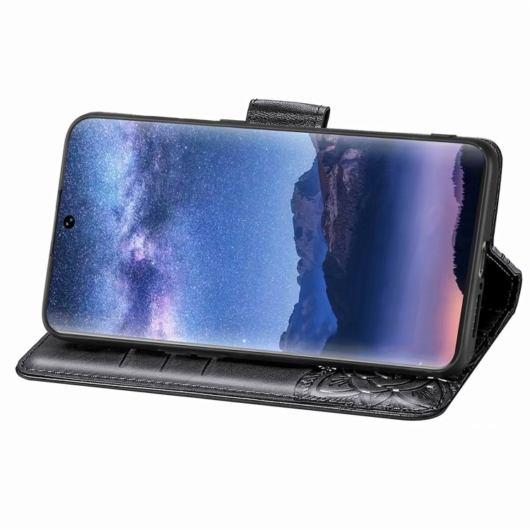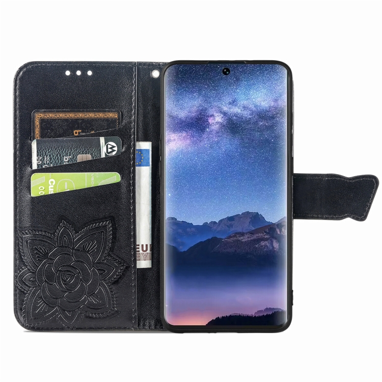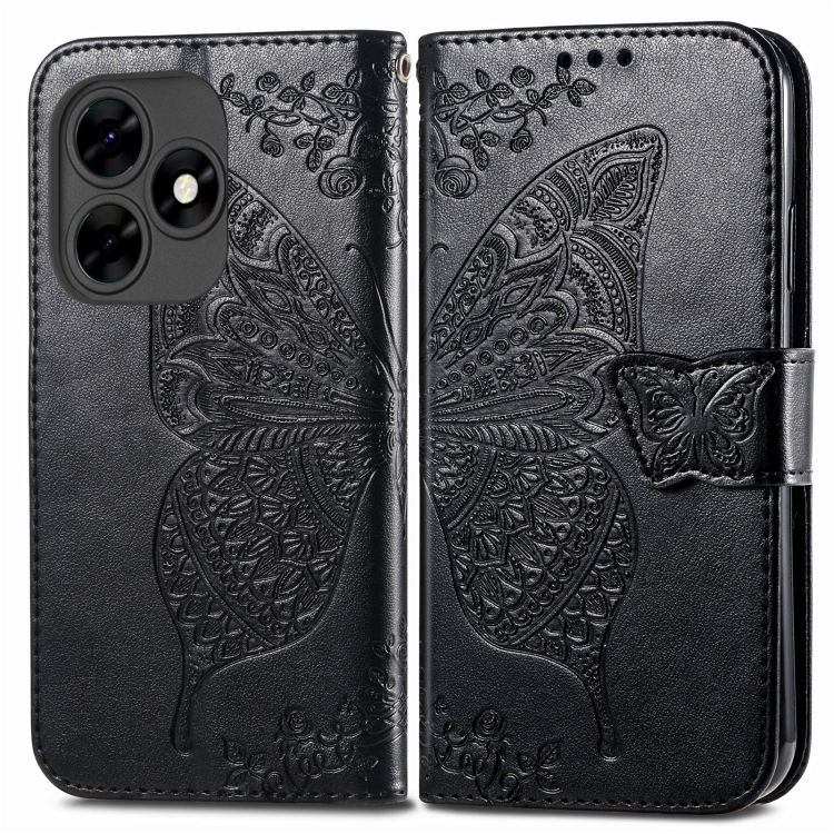 Funda para Teléfono Tecno Itel S23 de Cuero con Relieve Flor y Mariposa (Negro)