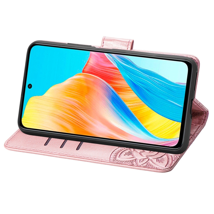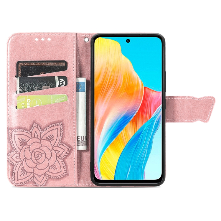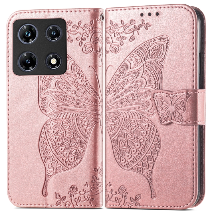 Estuche para Tecno Note 30 Pro Butterfly Love Flower de Cuero En Relieve (Oro Rosa)