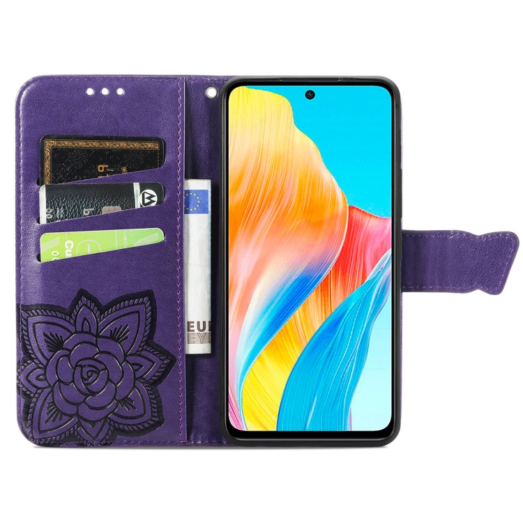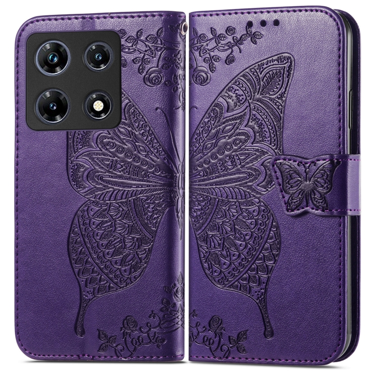 Estuche para Tecno Note 30 Pro Butterfly Love Flower de Cuero En Relieve (Púrpura Oscuro)