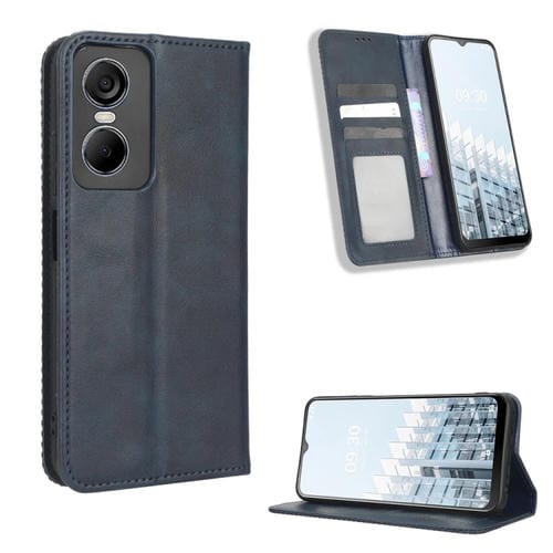 Funda de Cuero para Tecno Pop 6 Pro Be8 con Hebilla Magnética y Textura Retro (Azul)