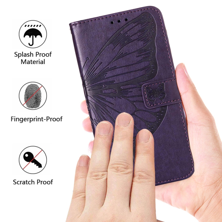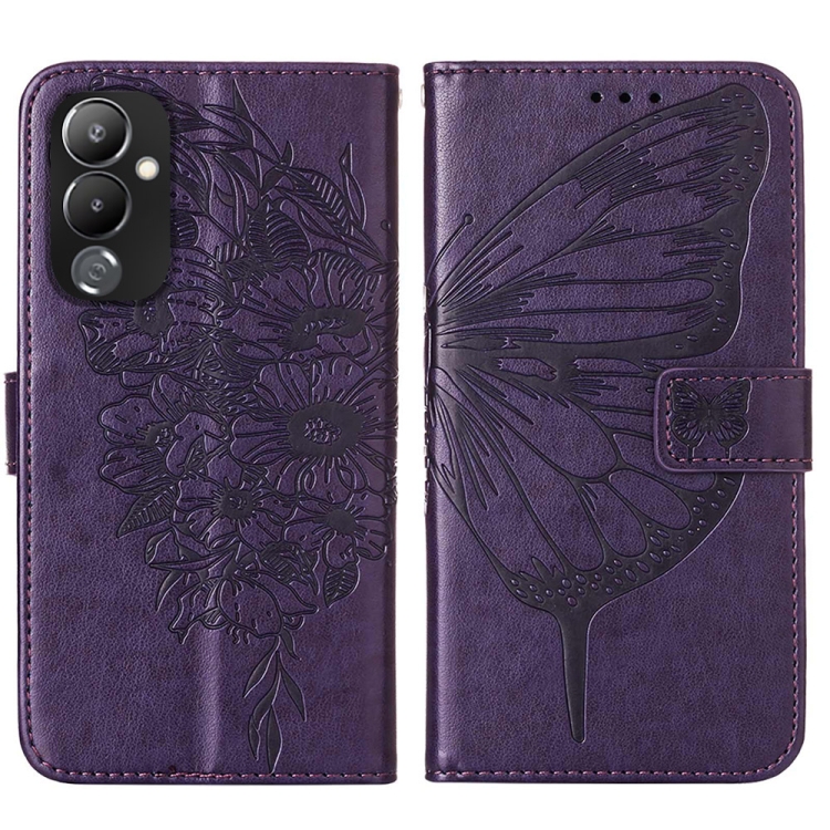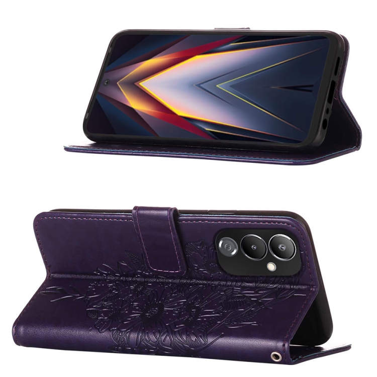 Estuche para Tecno Pova 4 Lg7N de Cuero con Tapa de Mariposa en Relieve (Púrpura Oscuro)