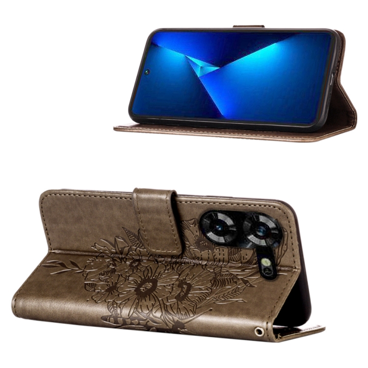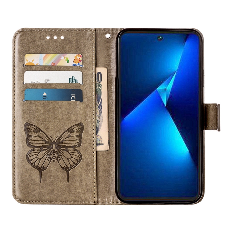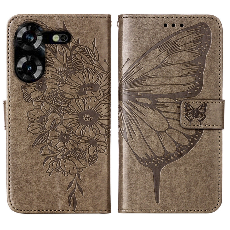 Estuche para Tecno Pova 5 4G Lh7N de Cuero con Mariposa en Relieve (Gris)
