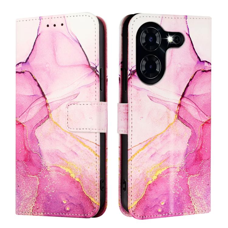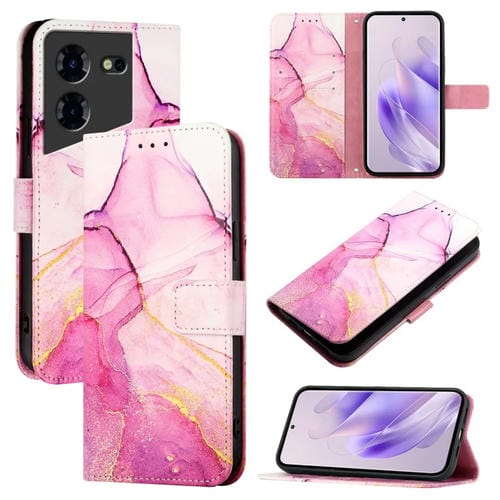 Funda de Cuero con Tapa para Tecno Pova 5 4G Pt003 con Patrón de Mármol (Rosa, Morado y Dorado)