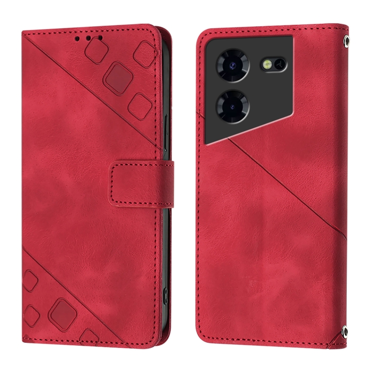 Funda de Cuero para Tecno Pova 5 4G Skin Feel En Relieve (Rojo)