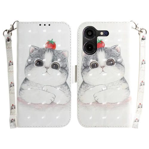 Funda de Cuero para Tecno Pova 5 Pro con Tapa Horizontal y Diseño 3D (Lindo Gato)