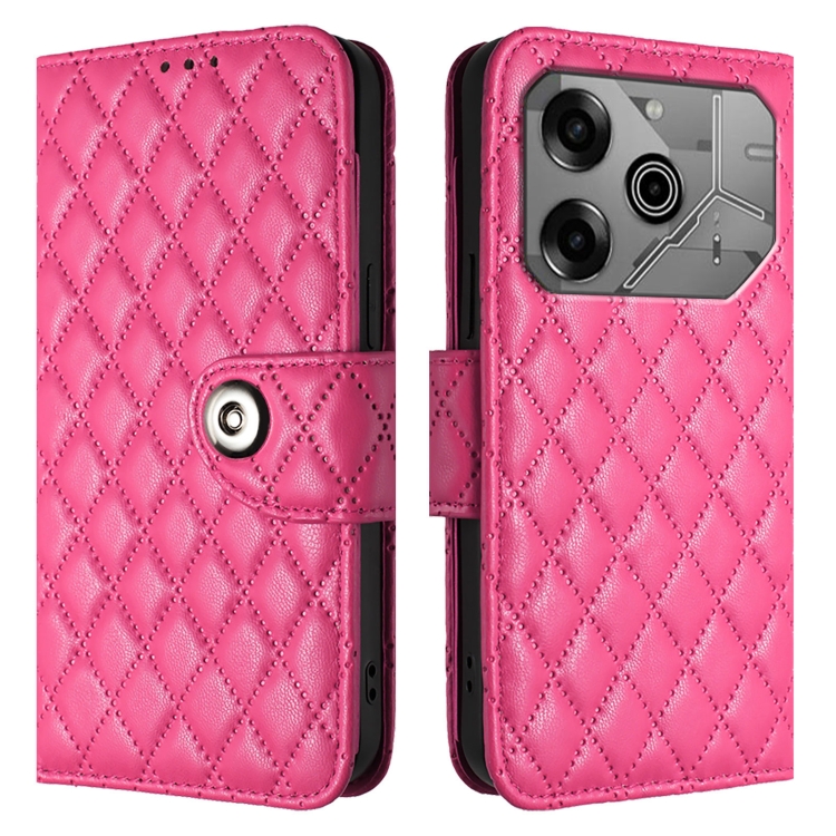 Funda para Tecno Pova 6 Neo con Tapa de Cuero Textura Rombal y Cordón (Rojo Rosa)