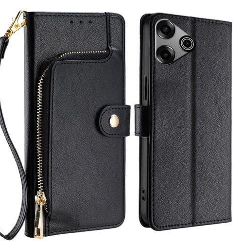 Funda de Cuero para Tecno Pova 6 Pro 5G con Bolsa y Cremallera (Negro)