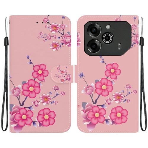 Funda para Tecno Pova 6 Pro y Pova 6 de Cuero con Dibujo Coloreado y Textura de Cristal (Flores de Cerezo)