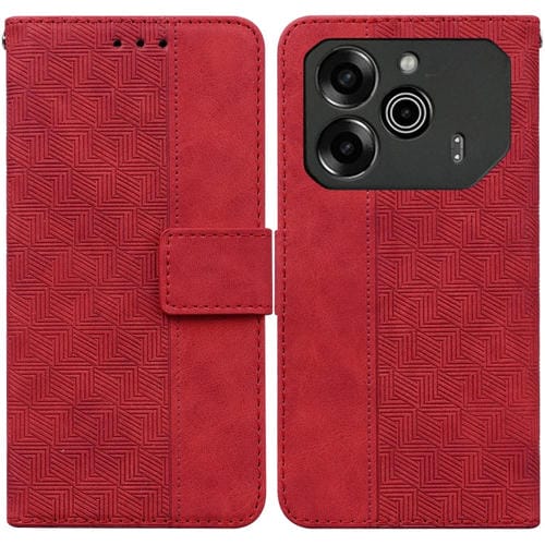 Funda para Tecno Pova 6 Pro y Pova 6 de Cuero con Relieve Geométrico (Rojo)