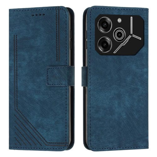 Funda de Cuero para Tecno Pova 6 Pro con Patrón de Rayas y Cordón Largo (Azul)