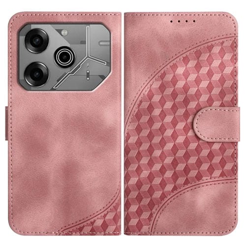 Funda de Cuero para Tecno Pova 6 Pro Yx0060 con Relieve y Cabeza de Elefante con Cordón (Rosa)