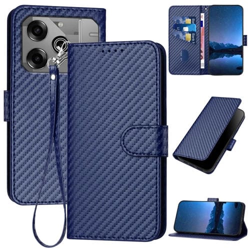 Funda de Cuero para Tecno Pova 6 Pro Yx0070 con Hebilla de Fibra de Carbono y Cordón (Azul Real)