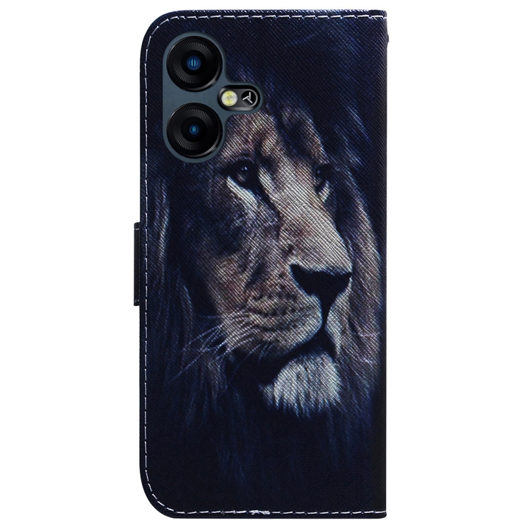 Funda de Cuero para Tecno Pova Neo 3 con Tapa y Dibujo Coloreado (León)