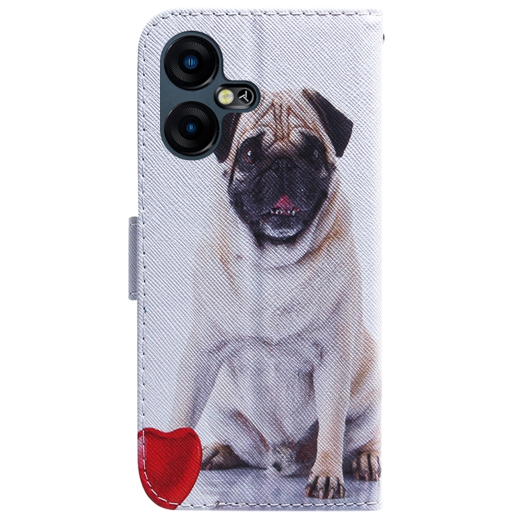 Funda de Cuero para Tecno Pova Neo 3 con Tapa y Dibujo Coloreado (Pug)