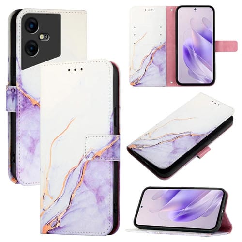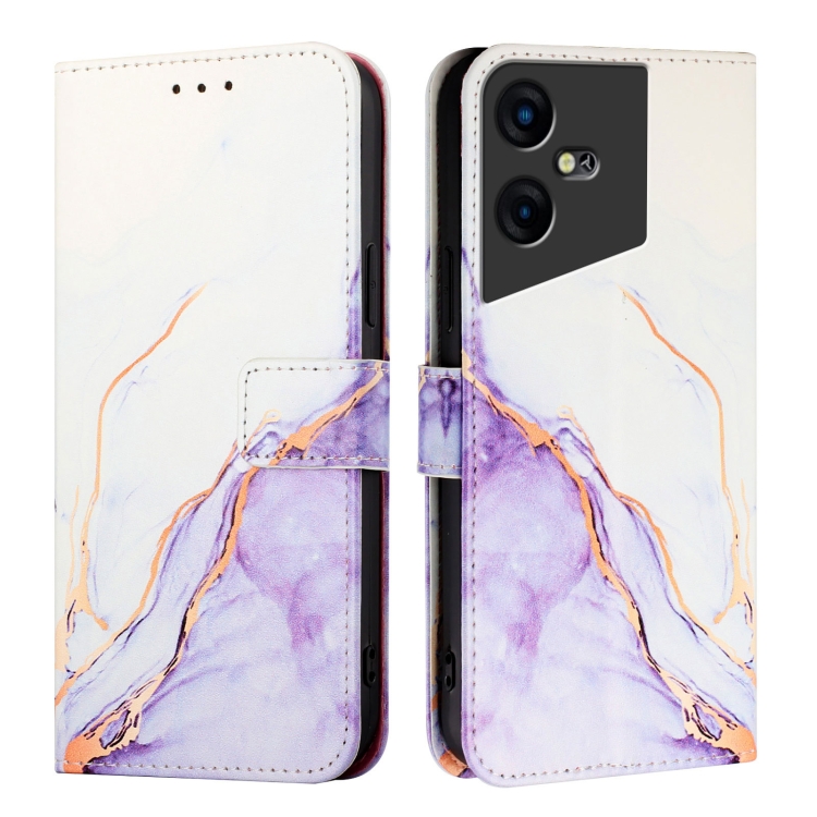 Funda para Tecno Pova Neo 3 Pt003 de Cuero con Tapa y Patrón de Mármol (Blanco y Morado)