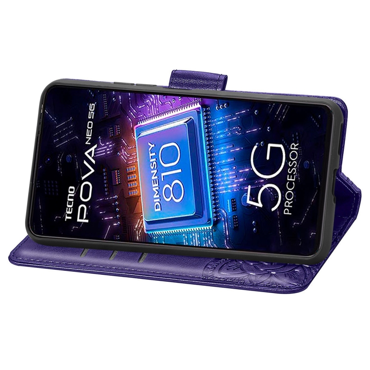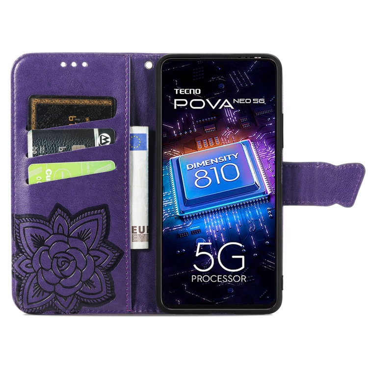 Estuche para Tecno Pova Neo 5G Butterfly Love Flower de Cuero En Relieve (Púrpura)