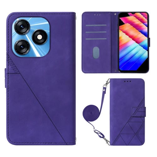 Funda de Cuero con Tapa para Tecno Spark 10 4G / K15K Crossbody 3D (Púrpura)