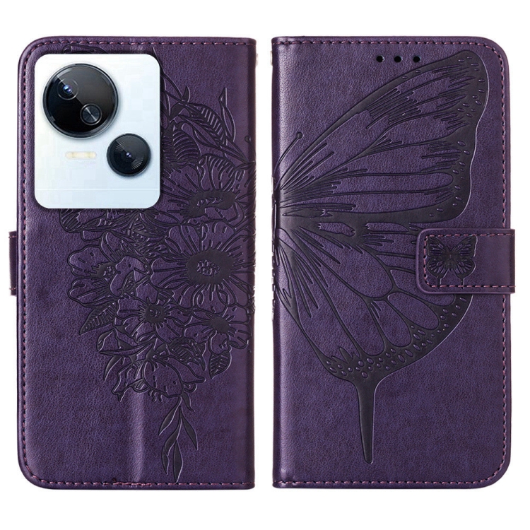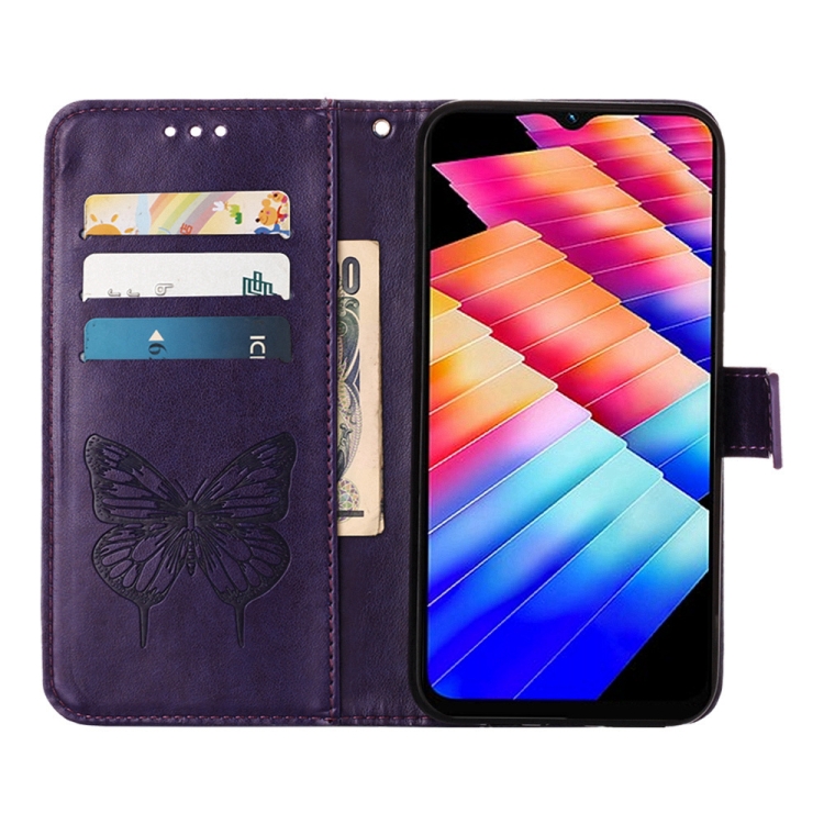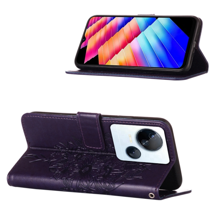 Estuche para teléfono Tecno Spark 10 5G K18 de cuero con mariposa en relieve (Púrpura Oscuro)