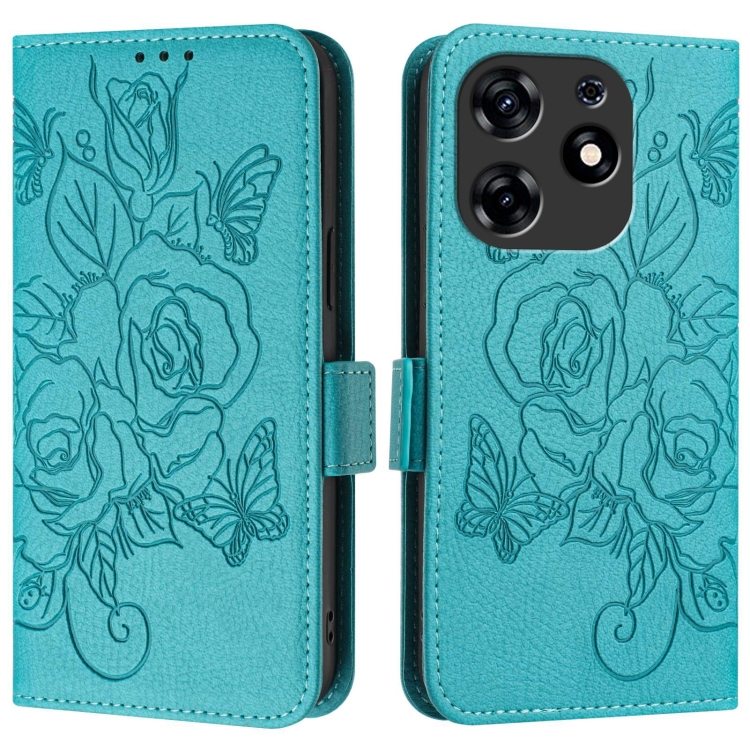 Funda de Cuero Antirrobo RFID para Tecno Spark 10 Pro con Relieve (Azul Claro)