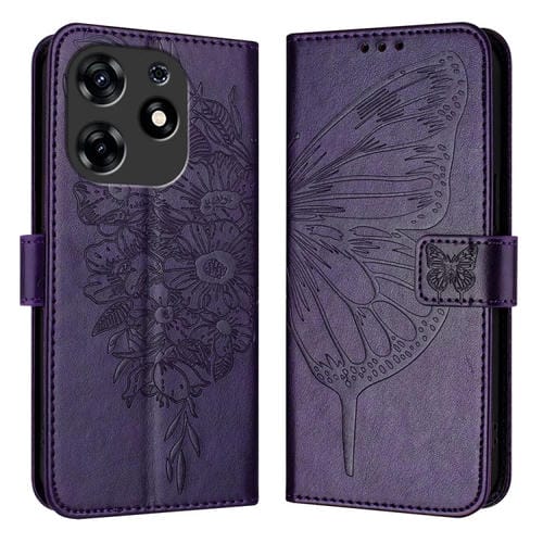 Funda de Cuero para Tecno Spark 10 Pro Magic Magenta con Mariposa en Relieve (Púrpura Oscuro)