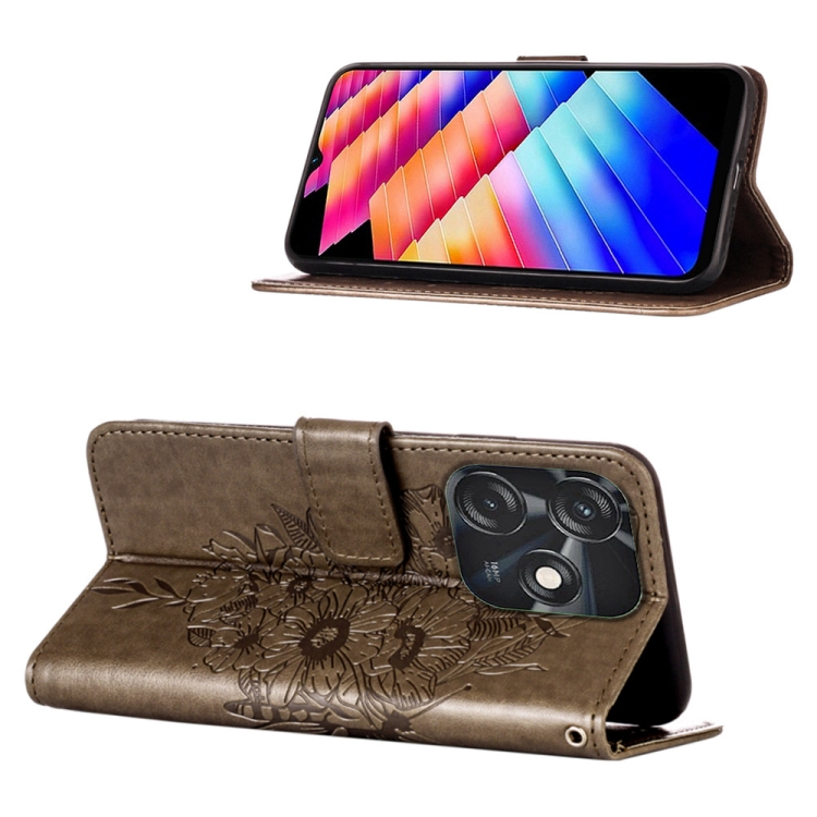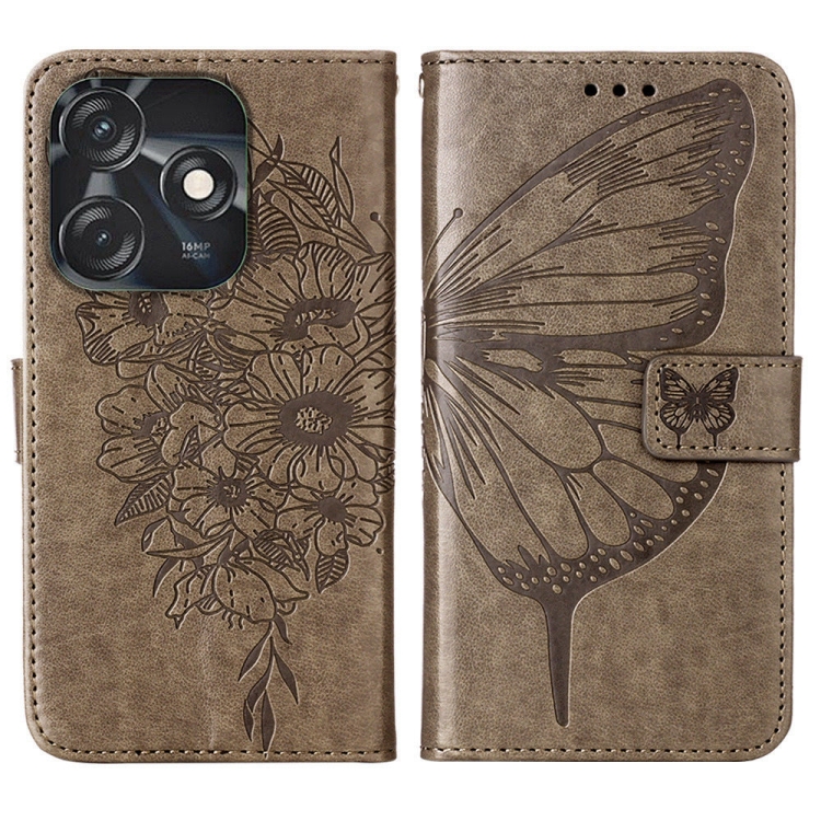 Estuche para Teléfono Tecno Spark 10C / K15Q Cuero Mariposa En Relieve (Gris)