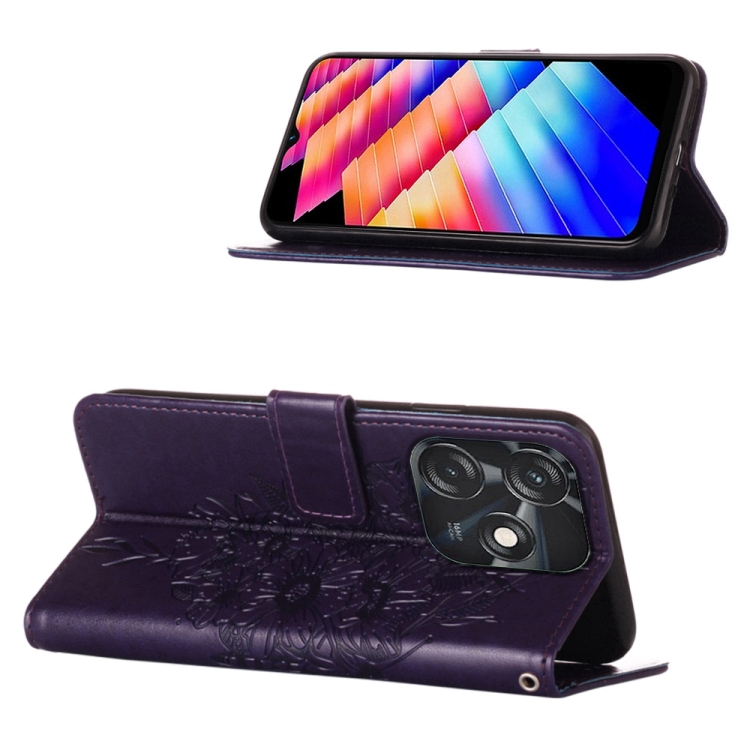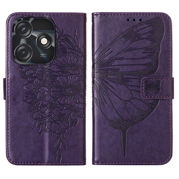 Estuche para Teléfono Tecno Spark 10C K15Q Cuero Mariposa En Relieve (Púrpura Oscuro)