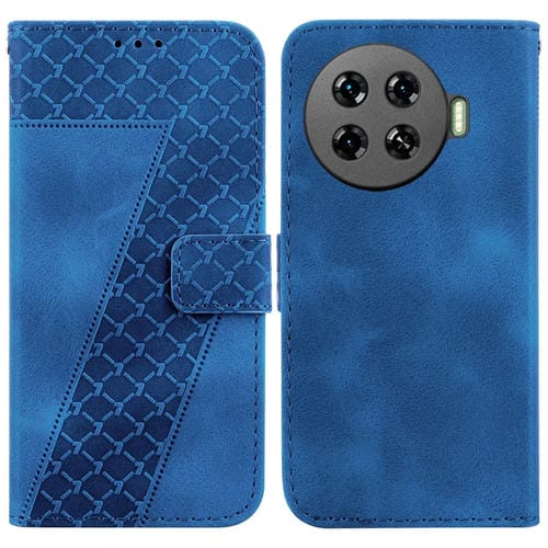 Funda de Cuero para Tecno Spark 20 Pro + 4G con Relieve Forma de 7 (Azul)