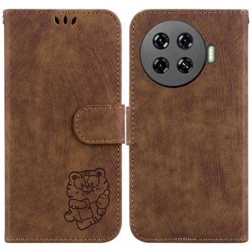 Funda de Cuero Tecno Spark 20 Pro+ 4G Little Tiger en Relieve (Marrón)