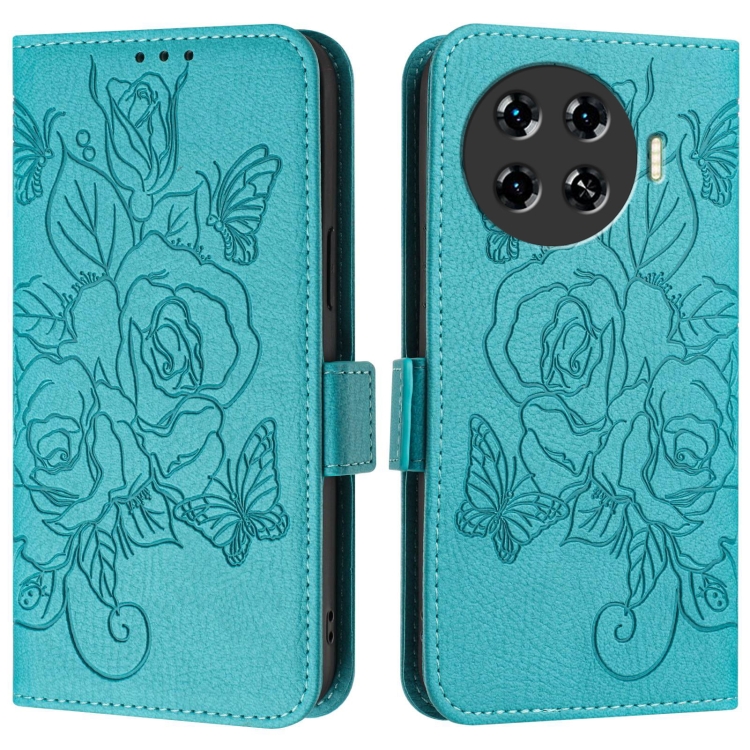 Funda para Tecno Spark 20 Pro + Estuche Cuero Antirrobo RFID con Rosa (Azul Claro)