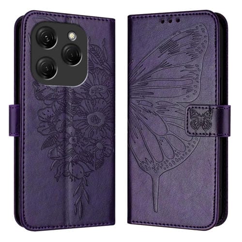 Funda de Cuero para Tecno Spark 20 Pro con Mariposa en Relieve (Púrpura Oscuro)