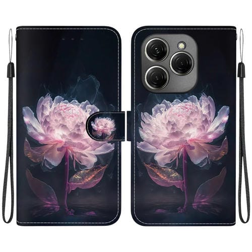 Funda de Cuero para Tecno Spark 20 Pro con Dibujo Coloreado y Textura de Cristal (Peonía Púrpura)